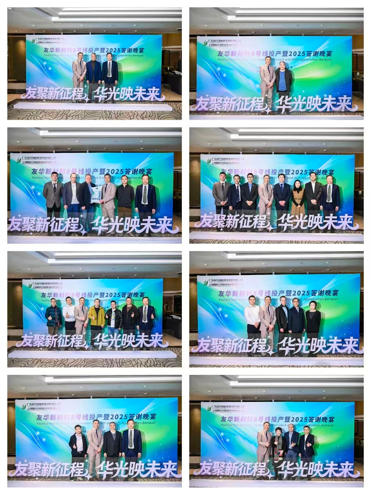 在美酒與歡笑聲中,晚宴也逐漸接近尾聲。嘉賓們紛紛舉杯,為這美好的夜晚畫上了一個圓滿的句號。最終,「友聚新征程,華光映未來」--友華新材料2025客戶答謝晚宴圓滿落幕。但這份情誼與信任,將永遠鐫刻在我們心中。未來,我們將繼續秉承“[誠信為本,追求卓越,互利共贏,持續發展]”的理念,與各位客戶、合作伙伴攜手共進,共創更加輝煌的明天!