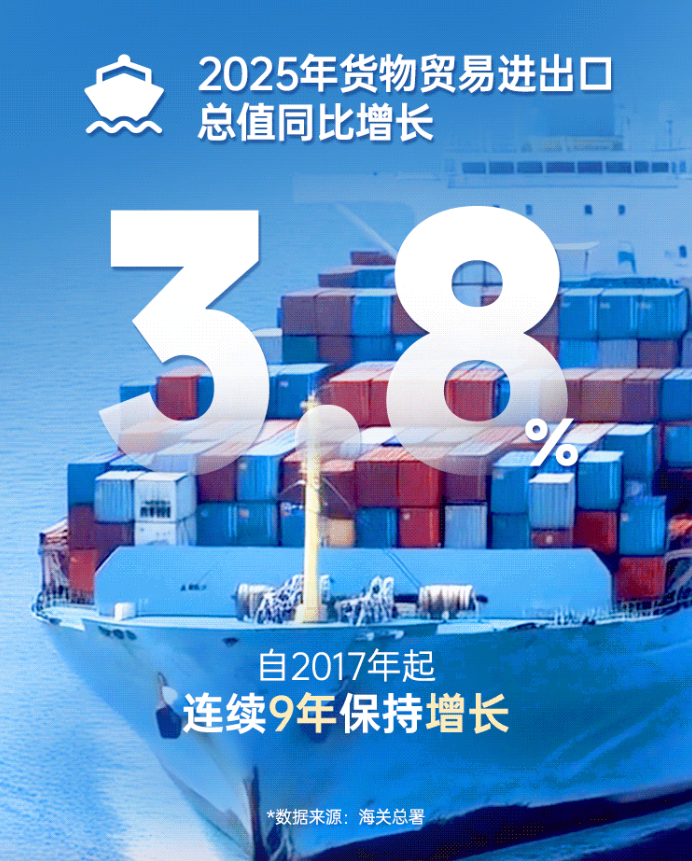 全年貨物進出口總額454687億元,比上年增長3.8%。其中,出口269892億元,增長6.1%;進口184795億元,增長0.5%。民營企業進出口增長7.1%,占進出口總額的比重為57.3%,比上年提高1.8個百分點。對共建“一帶一路”國家進出口增長6.3%,占進出口總額的比重為51.9%。高技術產品出口增長13.2%。12月份,貨物進出口總額42630億元,同比增長4.9%。其中,出口25359億元,增長5.2%;進口17271億元,增長4.4%。