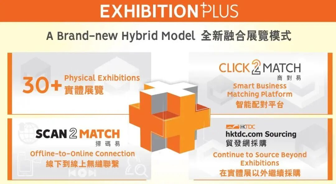2026年展會將延續「EXHIBITION+」融合模式,結合實體展、「商對易」(Click2Match)網上智能配對平臺、「掃碼易」(Scan2Match)線下與線上無縫聯系及貿發網采購平臺,全方位協助環球商家線上線下洽商。參展商可享為期兩個月的「貿發網采購」網上平臺推廣服務,使用3GB媒體空間,以相片及視頻展示產品及服務。