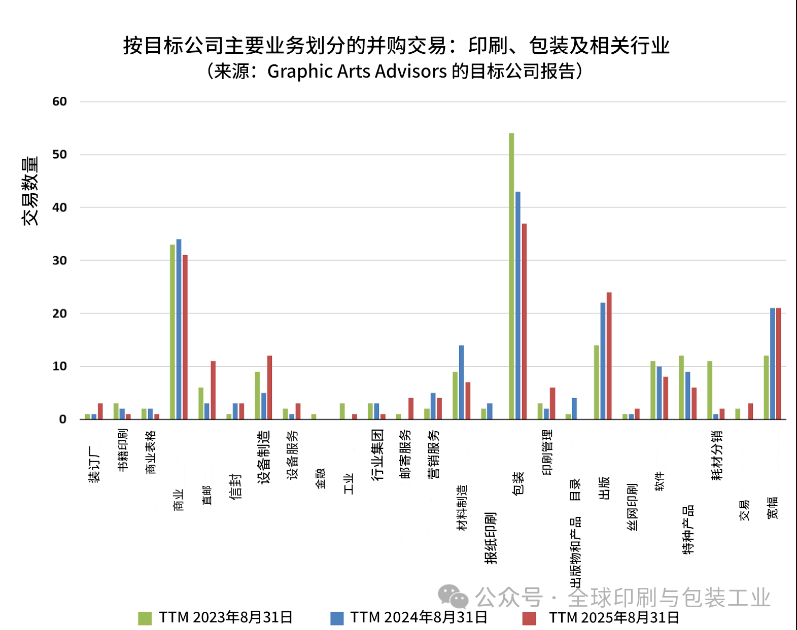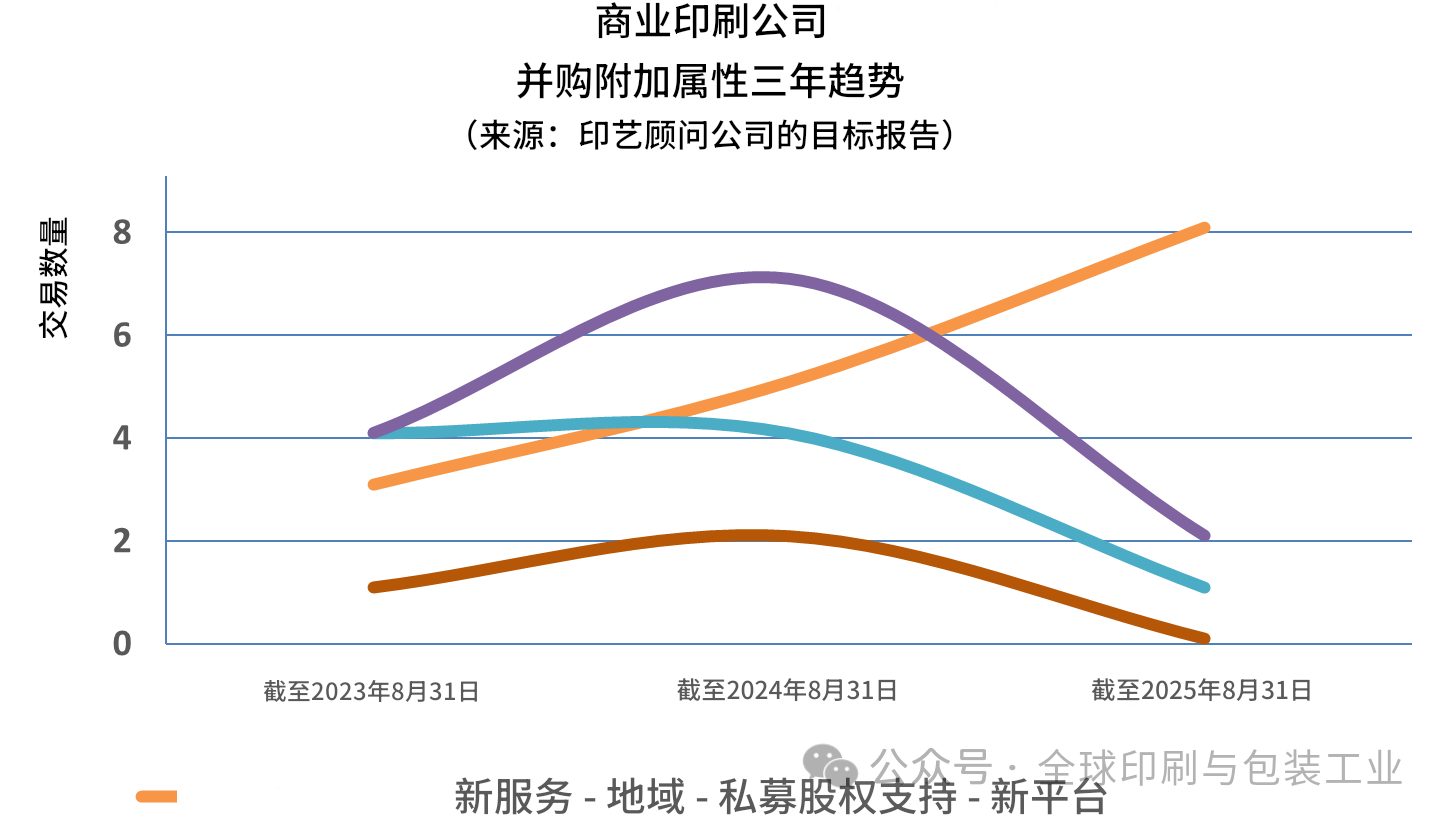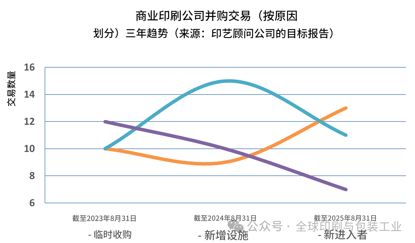 十四年來,GAA(印藝顧問公司)持續(xù)記錄與評論以包裝印刷行業(yè)為中心的多條業(yè)務(wù)線的并購活動,重點(diǎn)覆蓋商業(yè)印刷、包裝(標(biāo)簽、折疊紙盒、軟包裝)、大幅面印刷市場等。在每年8月,都會回看過去12個月的交易特征,以判斷行業(yè)的未來走向:哪些細(xì)分的并購增多或減少?買方完成收購的主導(dǎo)邏輯如何變化?是擴(kuò)張網(wǎng)絡(luò)還是并入整合?對未來各細(xì)分的潛在交易活動有何啟示?