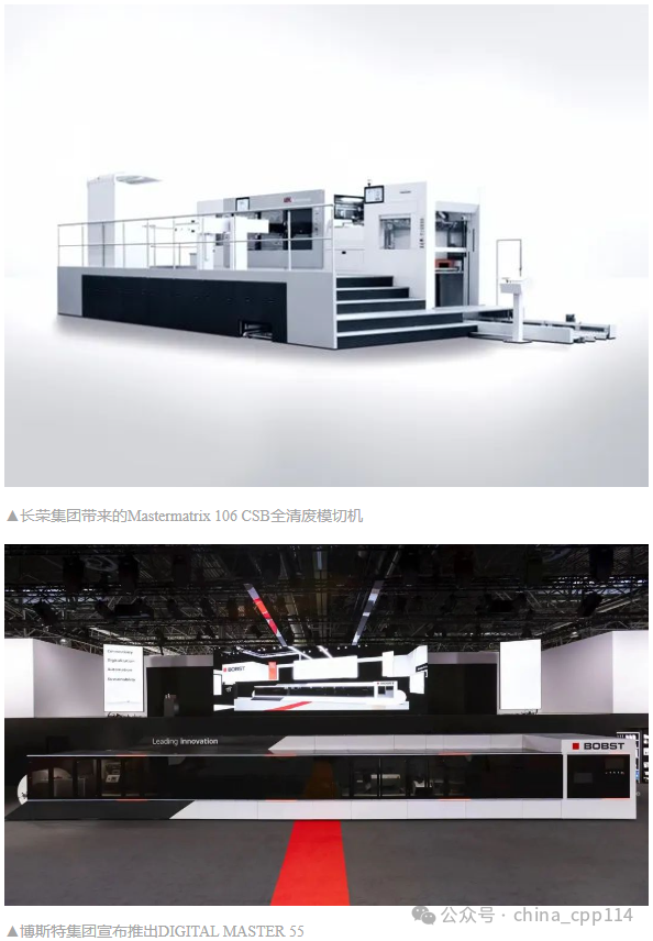 其他領域的印刷設備制造商也紛紛推出新的數字與噴墨方面的設備。標簽領域的得世集團攜手歐米特推出了KJet混合印刷機,以用戶為中心的設計和極短的紙卷路徑,為操作人員提供了一個高效且無縫的工作環境,同時減少了材料浪費和準備時間,充分展現了數字印刷的潛力;捷拉斯宣布推出其創新產品System to Compose,印刷寬度從原來的340毫米增加到430毫米,通過提升技術兼容性,允許添加、移除或更換附加單元,激勵印刷商創造獨一無二的印刷作品。印后包裝領域的長榮集團帶來的Mastermatrix 106 CSB全清廢模切機代表了其高速模切技術方面的創新成就,其在9000S/H小時速度下實現精準、穩定的全清廢生產,全新快速換版系統,對于多樣化訂單更為高效;博斯特集團宣布推出DIGITAL MASTER 55,集成了印刷、裝飾、質量控制和模切等多個工序,其生產速度可達每分鐘100米,不僅保證了更快的交付速度,還實現了更優的總擁有成本(TCO);高寶全球首發的速度高達16000張/小時的輪轉模切機CutPRO X 106,為市場提供了更多選擇……