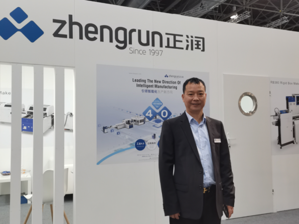 展會現場,正潤機械總經理蔡希富先生接受了中華印刷包裝網特約記者張子鍇的采訪,他表示:“正潤機械經過這些年不斷更新迭代,應該說,技術和工藝都已經遠超國外市場的同等技術了。我們正潤的產品比較多元化,整套設備比較齊全。這次帶來的設備也是比較高端,我們對這塊市場也比較期待,希望能與更多客戶進行近距離溝通,更深刻地了解全球市場的走向。”
