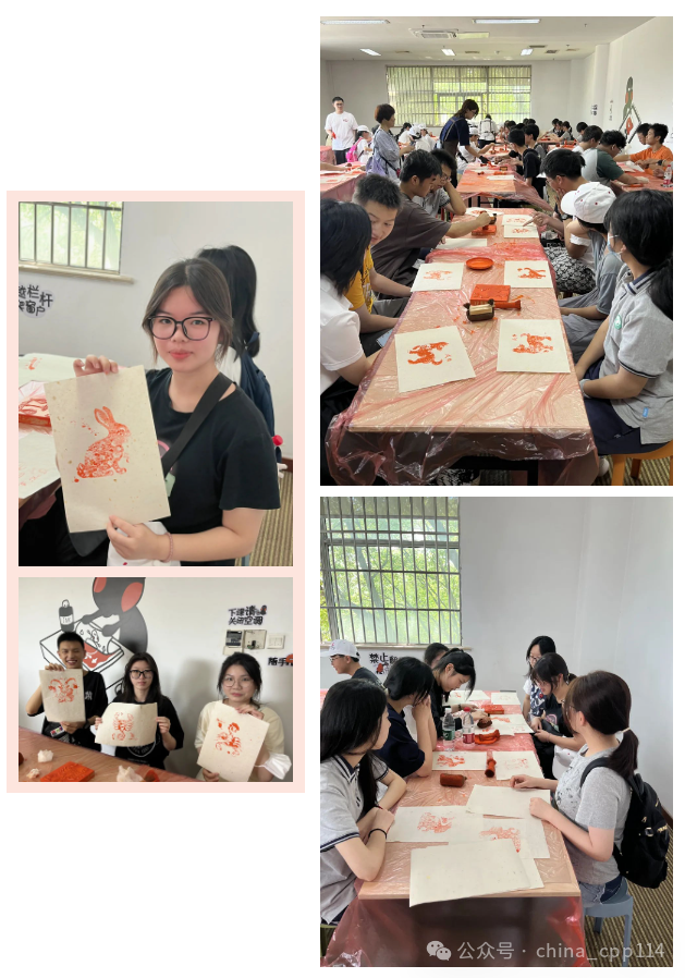一開始,他們的印刷過程并不順利,在經過志愿者的講解后終于摸清了印刷要點。首先拿出一張宣紙,然后用墨水輕刷模板,找出宣紙上相對光滑的一面并覆蓋在模板上,最后用刷子輕刷宣紙,等墨水印在上面再緩緩將其揭開。這樣一張簡易的雕版印刷畫就輕松完成了。經過嘗試摸索,他們駕輕就熟地完成了自己手頭作品的印刷。在歡聲笑語中,團隊成員不僅體驗了印刷的樂趣,更深刻感受到了傳統技藝在新時代煥發的無限活力。